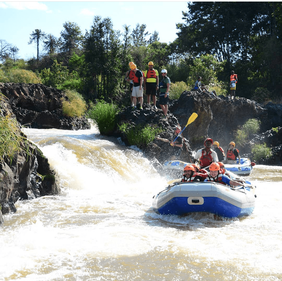This is the mother of all adventures. Rafting has become a popular sport mostly in the central region. it is done in River Sagana or otherwise the Tana which provides grade 3-5 rapids depending on the season. The Rafting trip is about 12 km long which takes approximately 2-3 hours. once you get to the camp( Rapids Camp Sagana) you are picked with a truck which you are driven upstream to the starting point where you are briefed by professional river guides on what to expect during your trip. Nothings greater than passing through the so called Rhinoceros Buttocks, Can of worms, Flexor and the captain fall, which are among the many grades that you’ll get to experience as you raft.